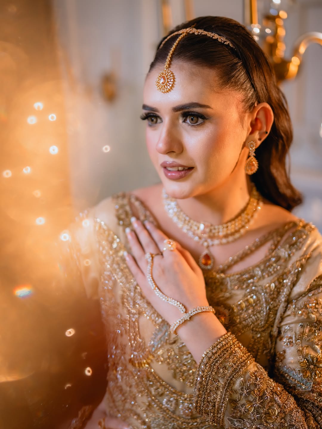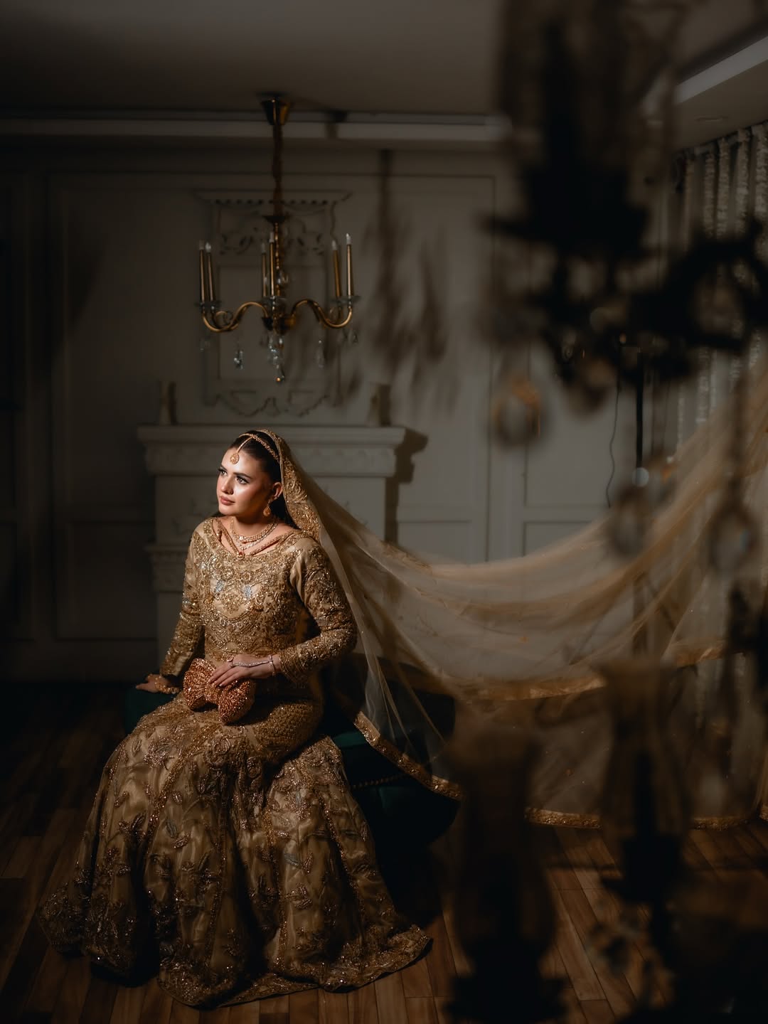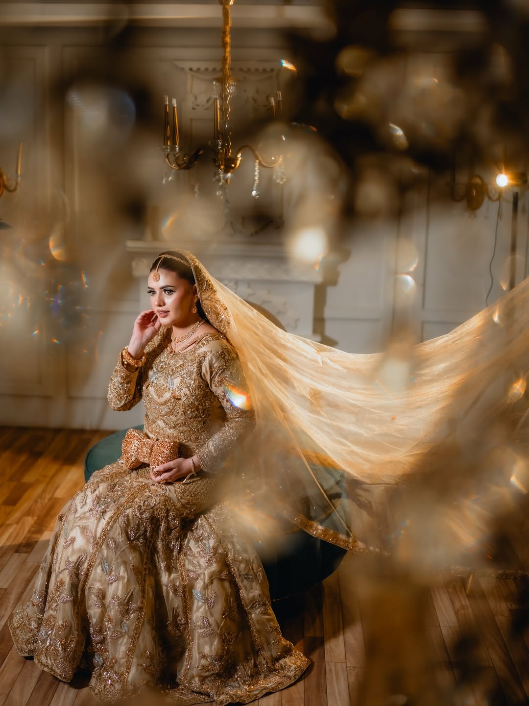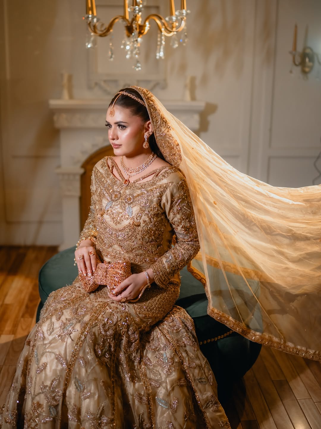 Lehnga: Crafted with fine Jamawar, completing the royal silhouette.